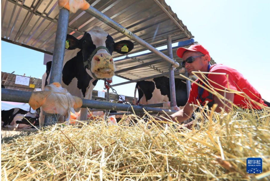 这是6月6日在白俄罗斯明斯克中白工业园拍摄的2023白俄罗斯国际农业展上的奶牛。