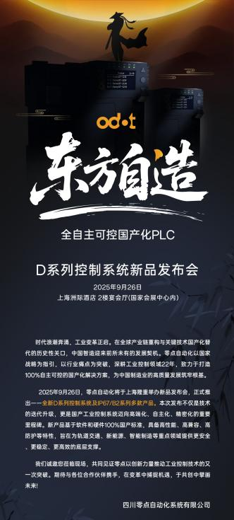 2025年9月26日,在备受瞩目的上海国际工博会举办期间,零点自动化将面向全球,正式推出其自主研发、100%自主可控的高端工控系统——“D系列”控制系统,同时还将发布多款与之配套的产品,实现从软件到硬件的全方位国产化。