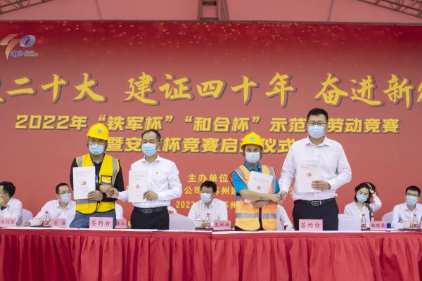 5月28日,由中建八局、中建国际联合主办的“喜迎二十大建证四十年奋进新征程”2022年“铁军杯”“和合杯”示范性劳动竞赛暨“安康杯”竞赛启动仪式在苏州顺利举行,标志着苏州南大配套、中建国际总部基地两个住宅项目在复工复产后正式按下加速键,蓄力跑出加速度。