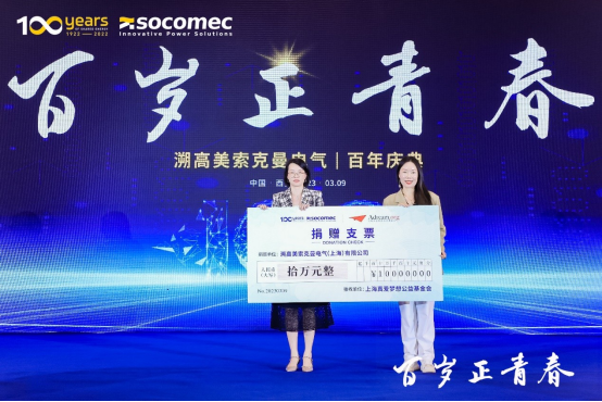 2023Socomec全国合作伙伴峰会上,Socomec为上海真爱梦想公益基金会进行公益捐助10万元,旨在助力残障青年再就业。罗黎阳认为这一行为是Socomec诸多公益助力中的一个。选择在峰会上进行捐赠,一方面是企业责任使然,Socomec的用人体系上关于残障人士他们也会特别设置一些岗位,在他眼里,残障人士也拥有独特的能力,他们需要更多的机会展现自己的闪光点,找到自我价值;另一方面,罗黎阳也希望借机呼吁更多的企业伙伴关注到这一群体,加入他们一起践行社会责任,扩充社会公益的力量,凝聚微光便成星河。